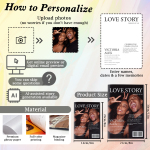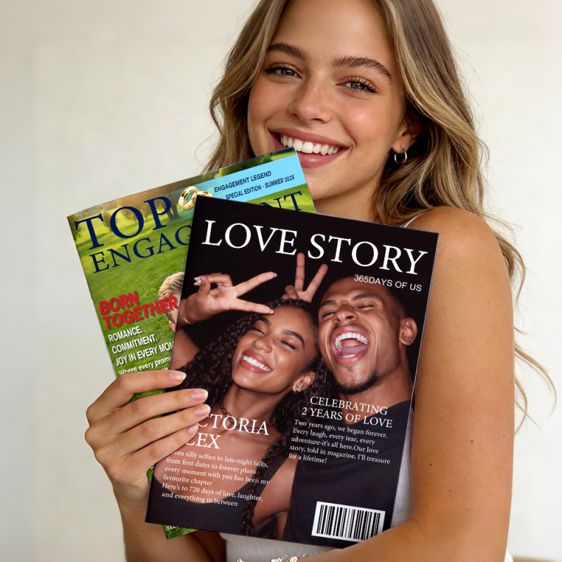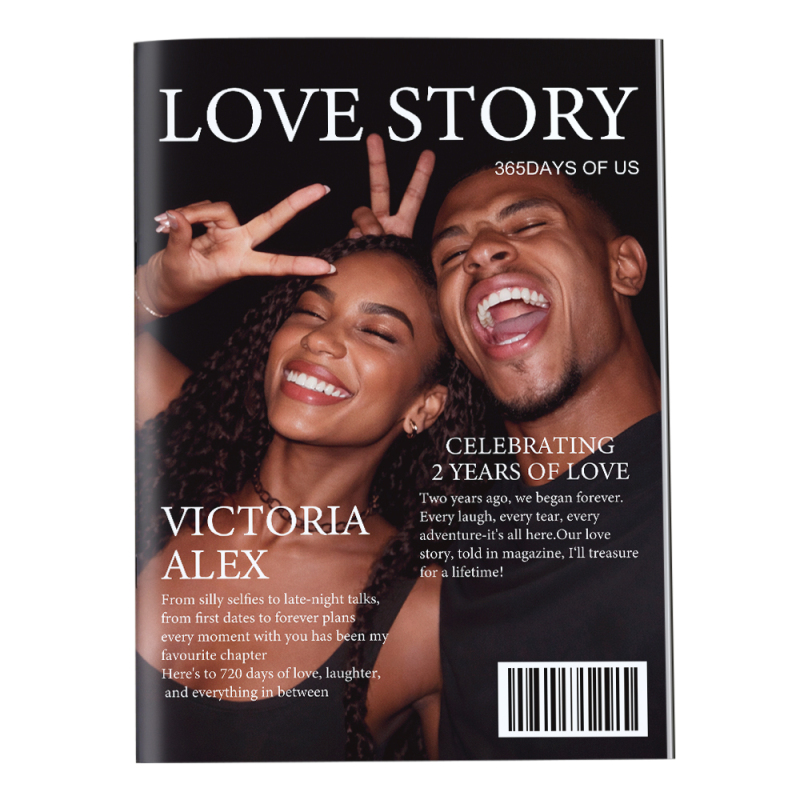 あなたの愛をパーソナライズされたカップルマガジンに注ぎ込みましょう.あなたのラブストーリーを最もクリエイティブな方法で祝うためにデザインされたユニークな記念品です.各ページは,あなたの写真,名前,思い出深い日付,そして素敵な瞬間で彩られ,楽しくて心温まるスタイリッシュな雑誌風レイアウトに仕上がっています.