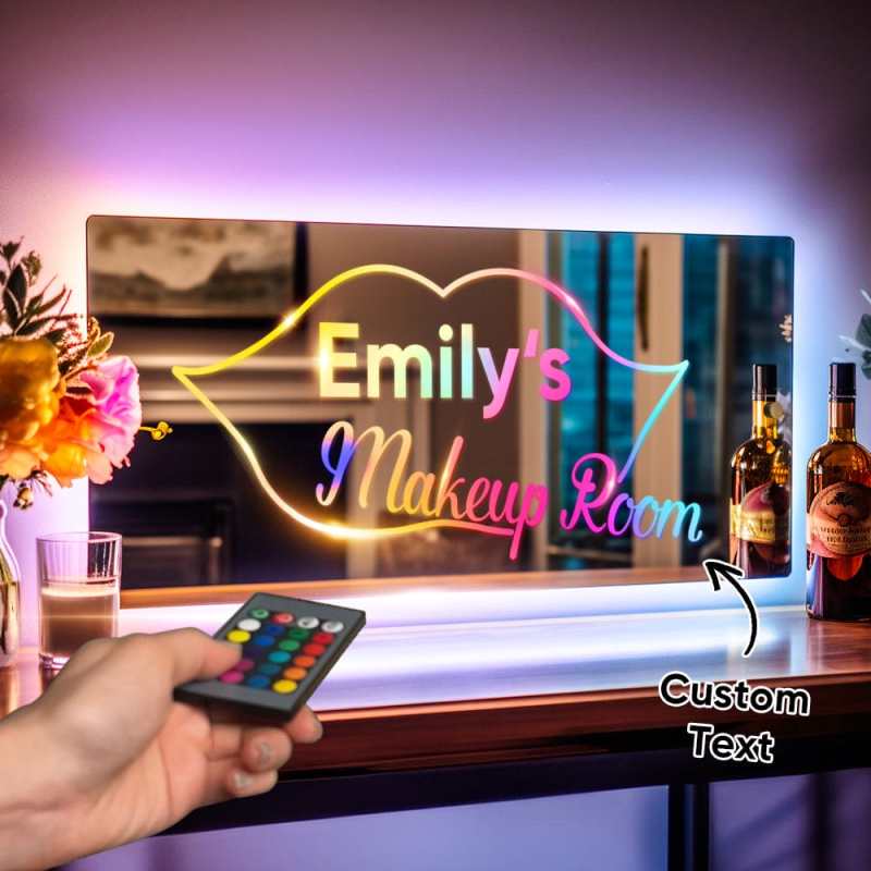 Personalized Makeup Room Wall Mirror Light Sign Colorful Mirror Light Valentine's Day Gift