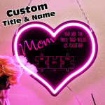 Personalized Mom You Are the Piece That Holds Us Together Neon Mirror Light Puzzle Piece Sign Mother's Day Gifts