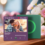 写真と再生可能な曲が付いたパーソナライズされた音楽冷蔵庫マグネット。カップルへのユニークなギフト。