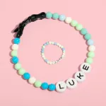 それぞれの首輪には、楽しくカラフルなビーズを使って、ペットのお名前を愛情を込めて刻印します。そして今なら、お揃いのブレスレットもプレゼント!完全無料!お二人の愛とスタイルを際立たせるために、ぜひ身につけてください。