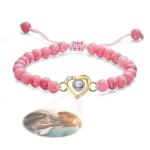 パーソナライズされた写真投影ビーズ ブレスレット ハート型 ラインストーン付き 彼女への特別なギフト