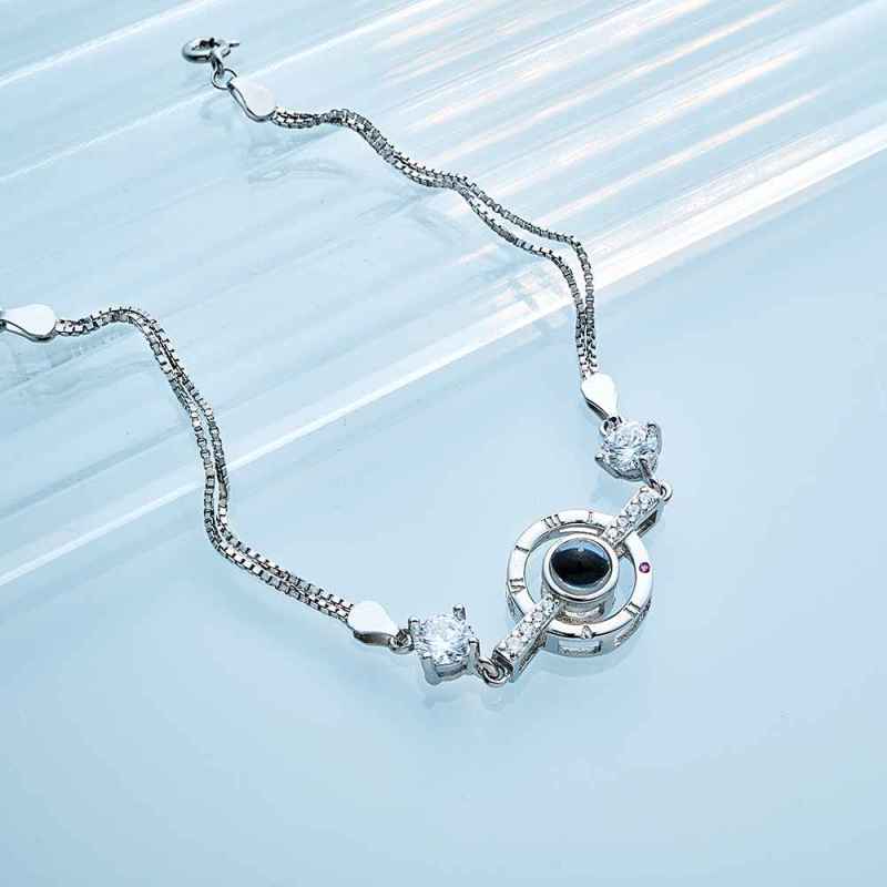 彼女のためのパーソナライズされた写真プロジェクションブレスレットローマ数字のエレガントなブレスレット