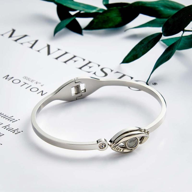 彼女のためのパーソナライズされた写真投影デビルアイブレスレットラウンド無料調整ブレスレット
