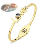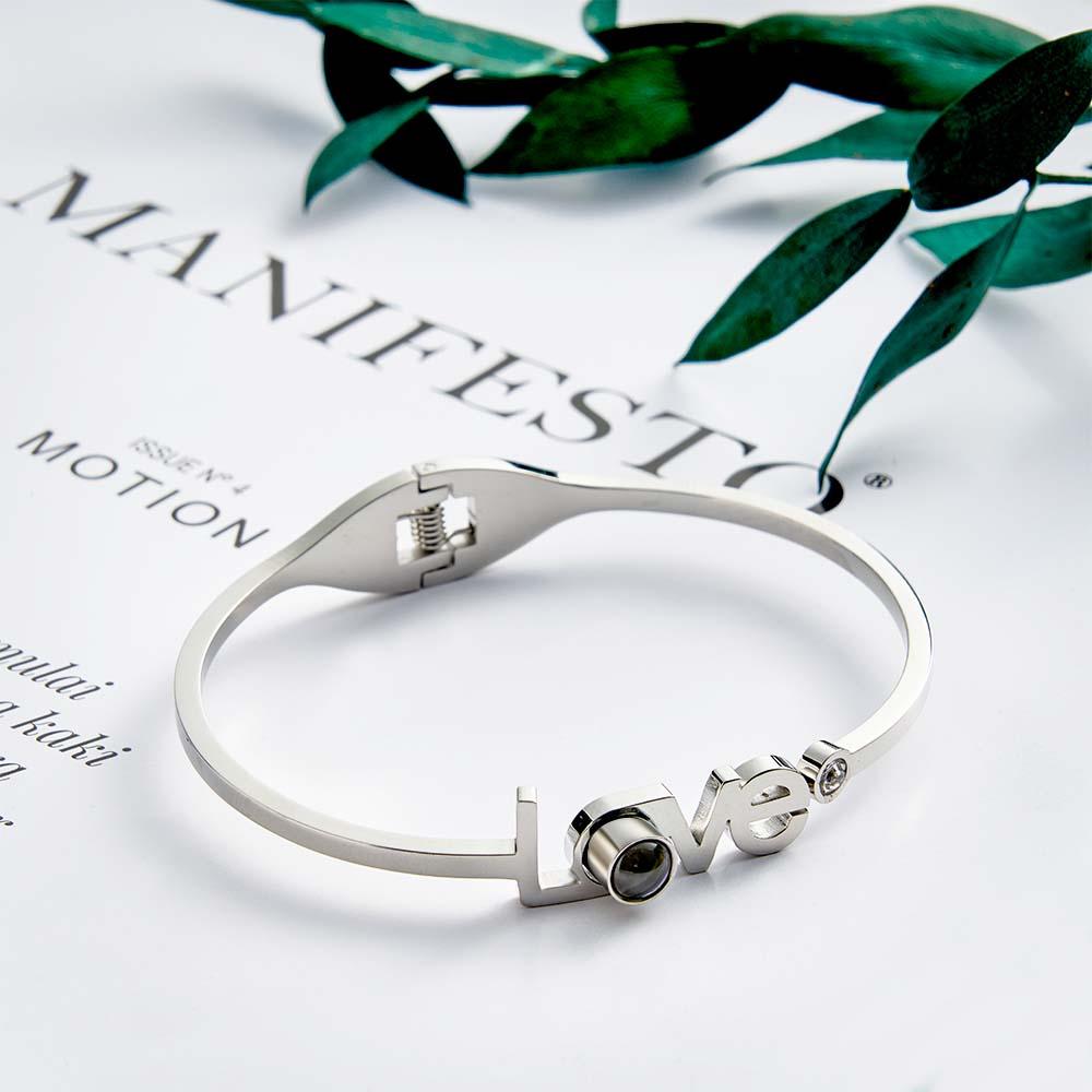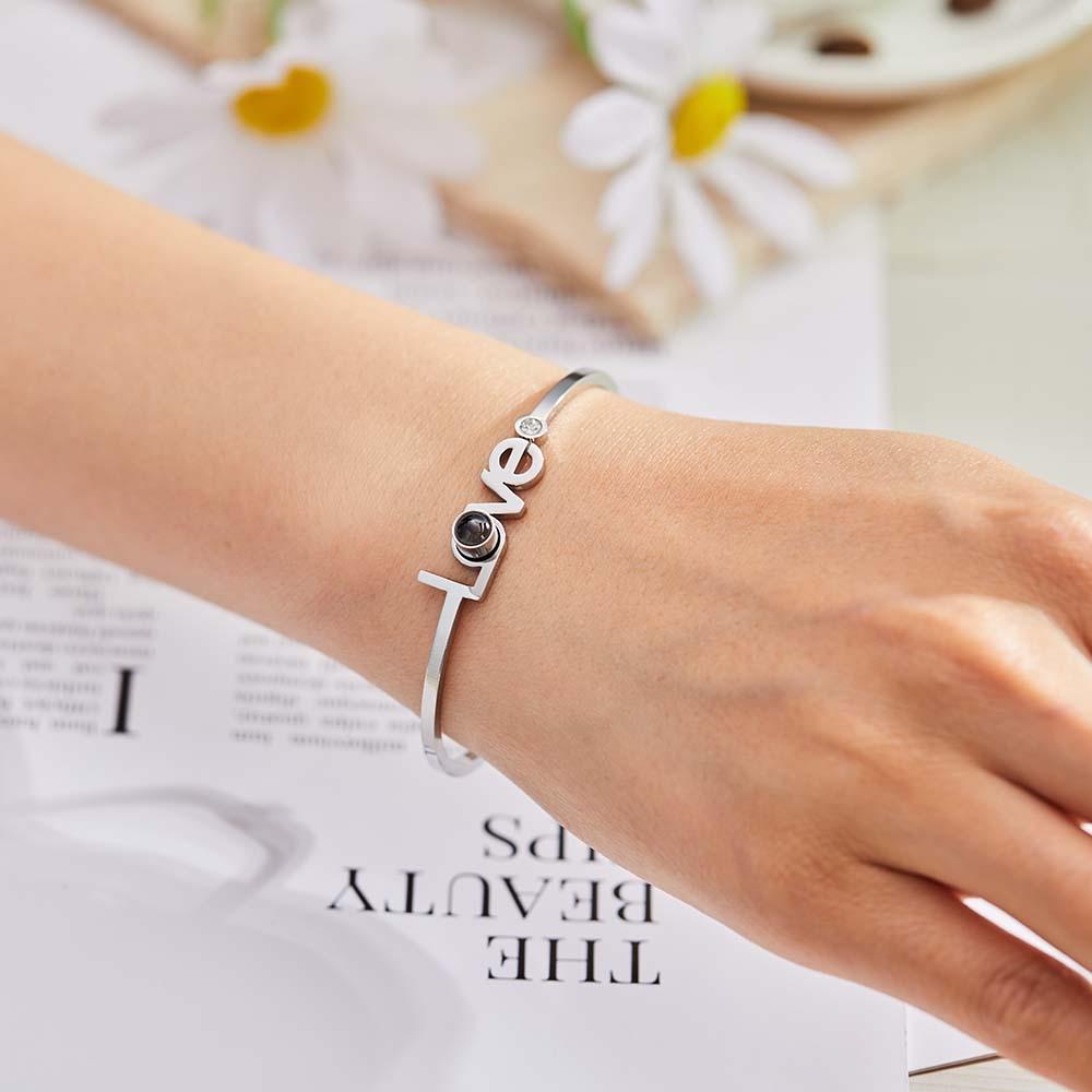 彼女のためのパーソナライズされた写真投影 Love ブレスレット ラウンド無料調整ブレスレット
