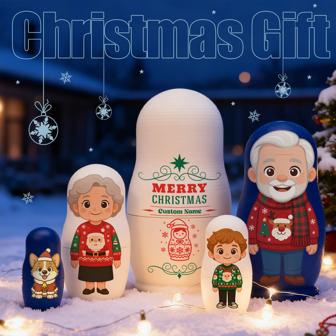 パーソナライズされた肖像画の入れ子人形,テキスト付き,カスタム写真,家族の肖像画,漫画スタイルのギフト写真,クリスマスギフト