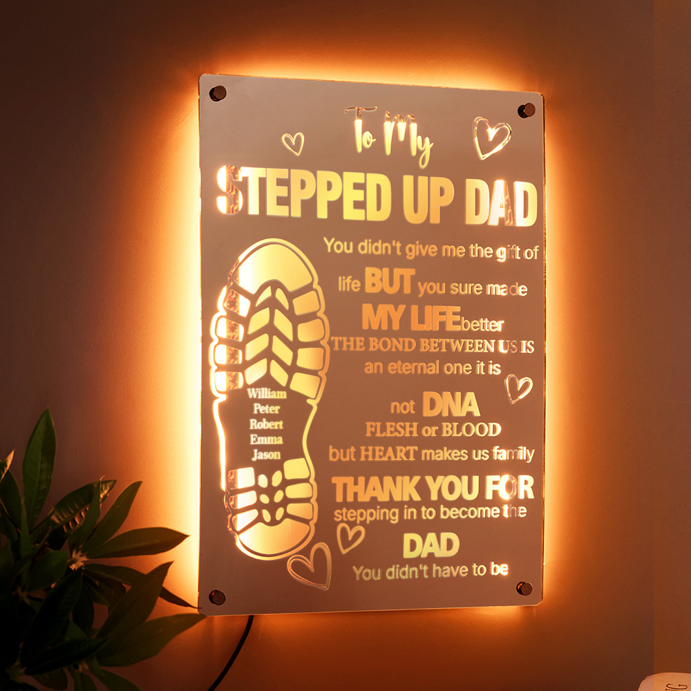 Personalized Stepped Up Dad Mirror Light Dad's Footprint Sign Gift for Father's Day