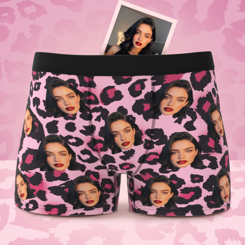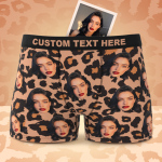バレンタインギフト カスタムフェイスボクサー セクシーなヒョウ柄下着 彼氏へのパーソナライズされたボクサーブリーフ