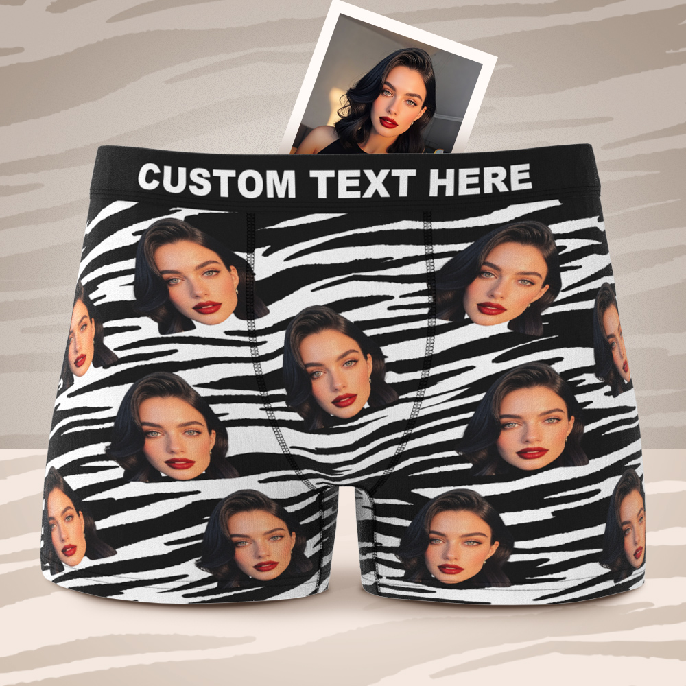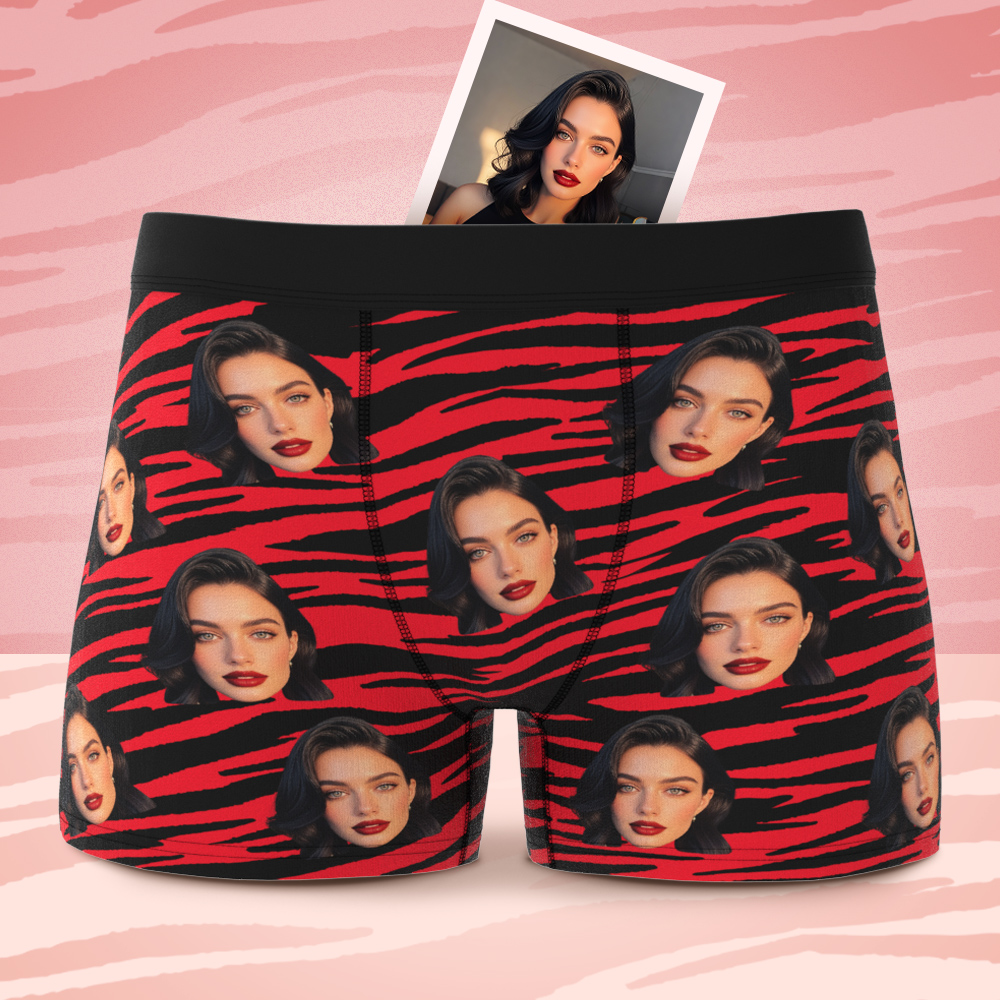 バレンタインギフト カスタムフェイスボクサー セクシーなストライプ柄下着 彼氏へのパーソナライズされたボクサーブリーフ